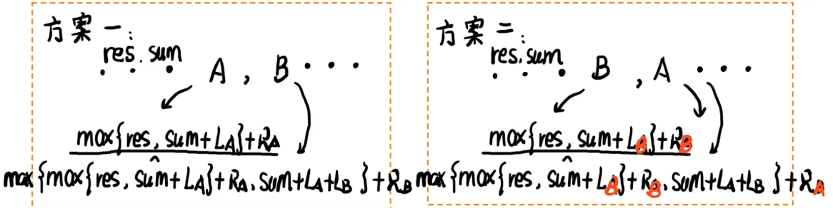 发现 \(res_前\) 和 \(res_后\) 是可以消去的,如果他们有一个承包了最大值,则也可以说方案一优于方案二。如果其他两项承包了最大值,\(res_前\) 和 \(res_后\) 就是完全没有意义的。