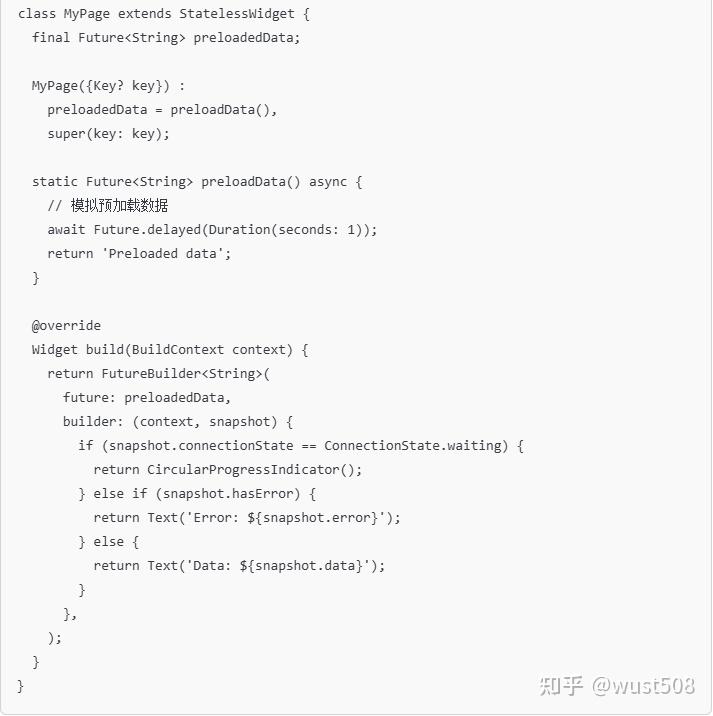 在上面的代码中,preloadData方法提前加载数据,在页面构建时直接使用预加载的内容,避免了页面加载时的延迟。