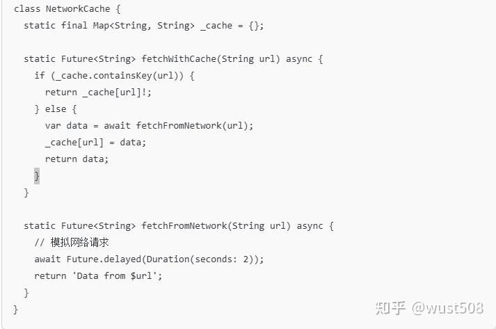 在上面的代码中,通过缓存机制,首先检查是否已缓存数据,如果缓存中存在,则直接返回数据,否则进行网络请求并将结果缓存。