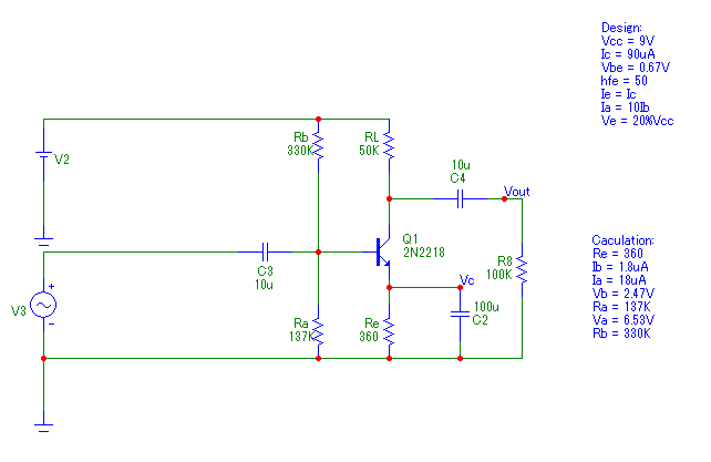 下面需要选择适当的Vcc和Ic,然后可以在数据手册中找出Vbe和hFE,以此为条件,我们认为