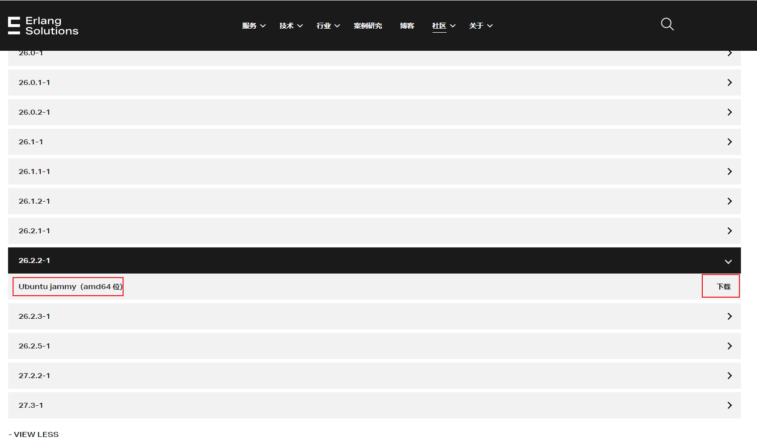 2.需要安装esl-erlang_26.2.2-1~ubuntu~jammy_amd64.deb,jammy的包,如果安装esl-erlang_26.2.5-1~ubuntu~bionic_amd64.deb,会报libssl.1.1依赖错误,无法安装,因为高版本的乌班图已经不能安装libssl1.1