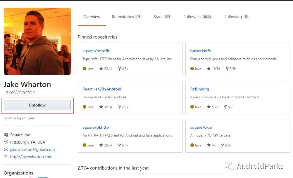 首先,和微博、朋友圈、空间一样,你要想在你的朋友圈看到别人的动态,首先你的加人家好友对吧。所以首先我们得关注一些行业的大牛,例如关注Jake Wharton