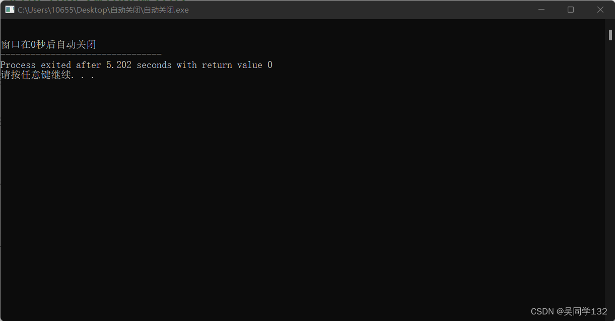 这里有个自动关闭窗口的程序,时间可以自行修改(注意for里面定义的\(i\)的初始值为时间\(-1\))