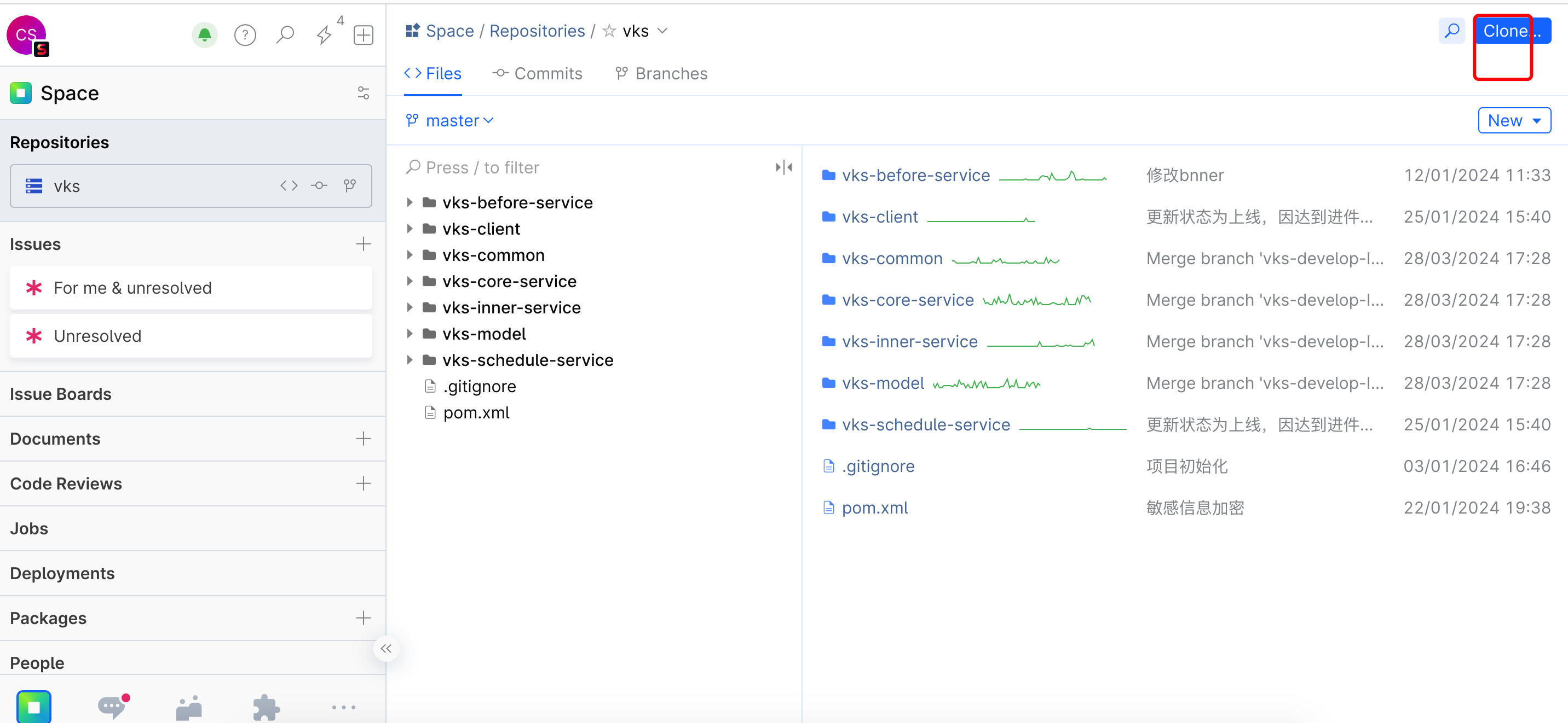 从您的 IDE 中直接克隆 Space Git 项目仓库。
