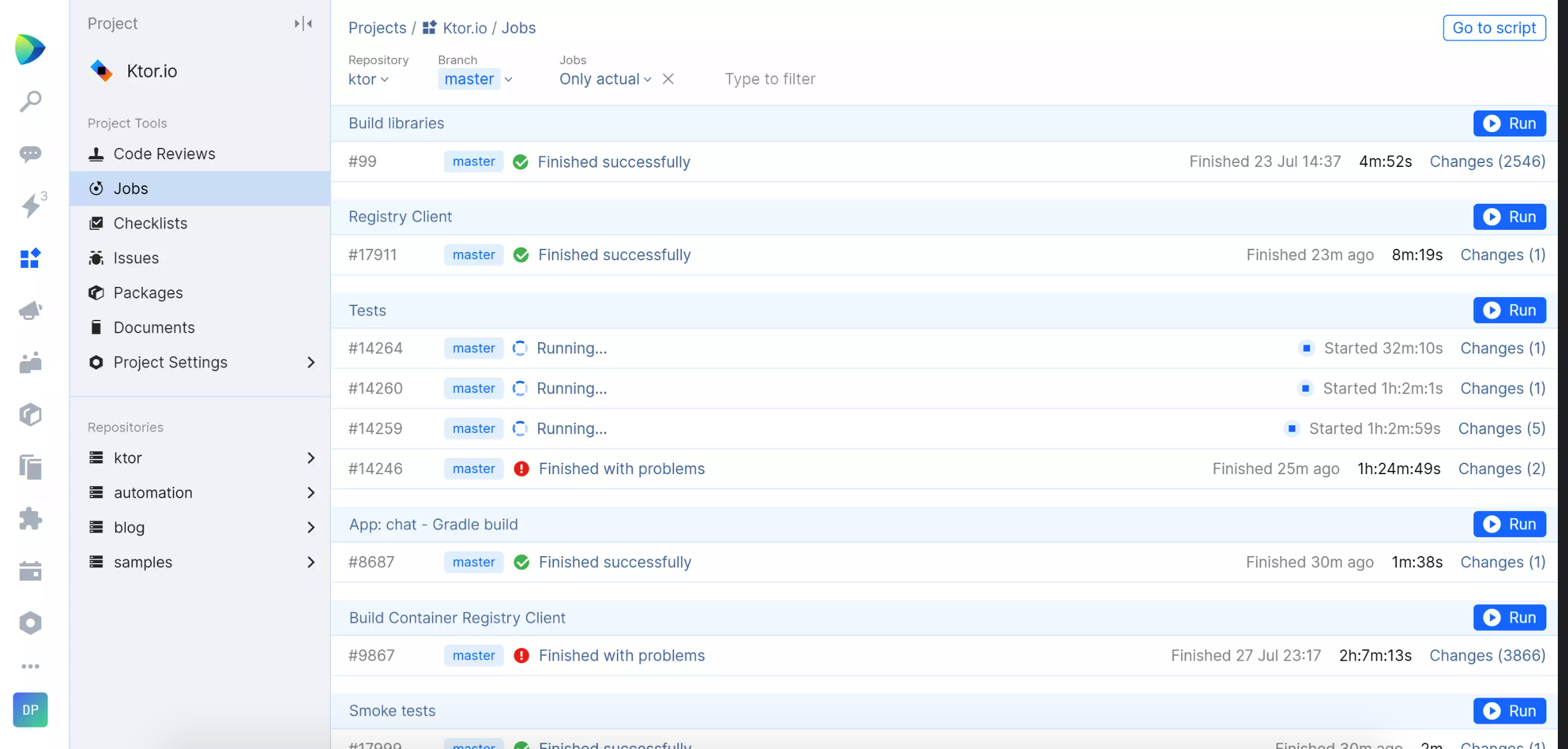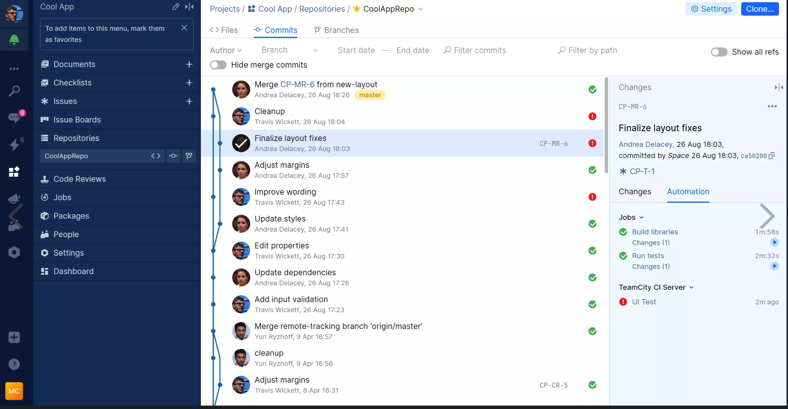 Space 与 TeamCity(一个强大的持续集成和测试报告工具)的集成允许您执行以下操作: