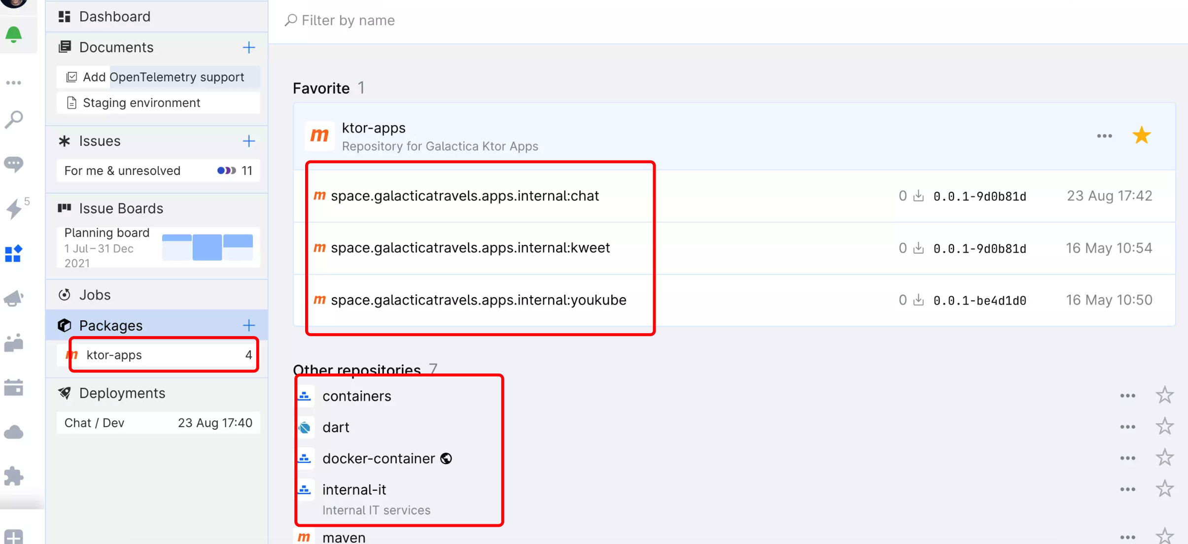 在 CI/CD 管道中或从本地计算机创建和使用软件包仓库。 使用 Container、Maven、NuGet 、Python、Composer、Dart、Rust、npm 和 File 仓库在产品之间共享软件包和文件。