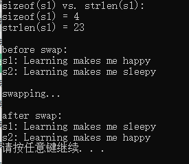 2.2.3 交换两个数组的地址,两个字符串在储存单元中没有交换