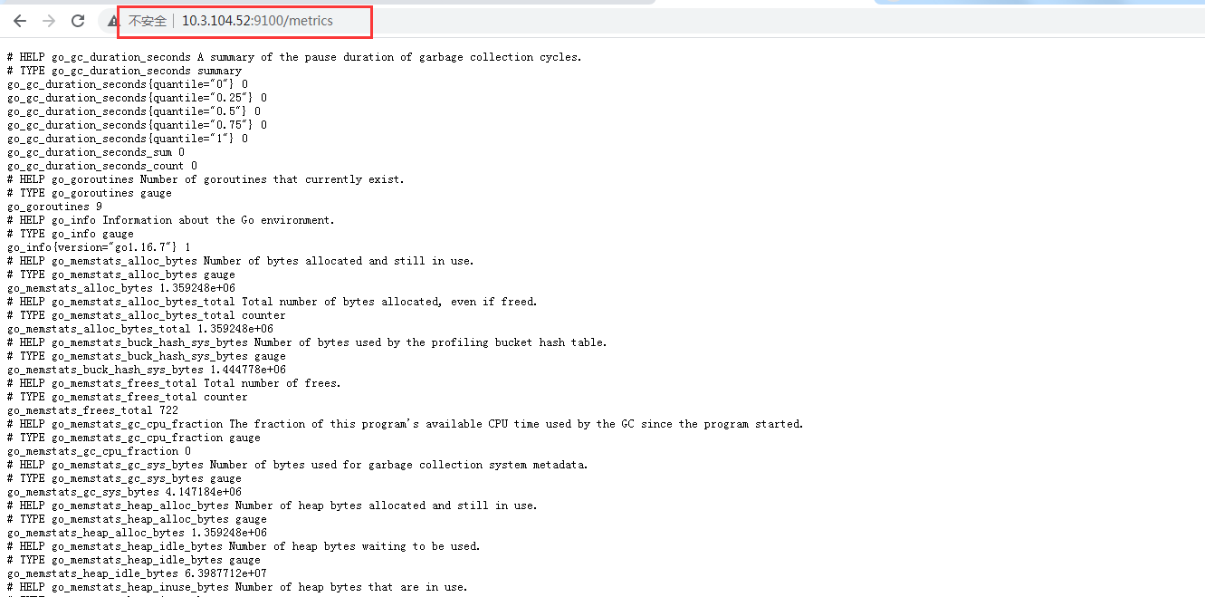 注:出现这个结果表示Node-Exporter组件安装成功,注意:另外两台dockerhost主机也需安装Node-Exporter组件组件操作完全一样,安装完成后请自行打开浏览器验证。