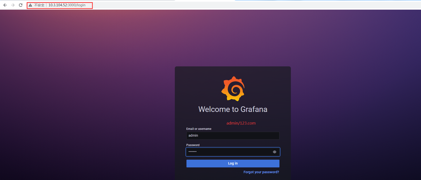 [root@docker01 ~]# mkdir -p /data/grafana-storage [root@docker01 ~]# chmod 777 -R /data/grafana-storage/ [root@docker01 ~]# docker run -d \ -p 3000:3000 \ --name grafana \ -v /data/grafana-storage:/var/lib/grafana \ -e "GF_SECURITY_ADMIN_PASSWORD=123.com" \ grafana/grafana