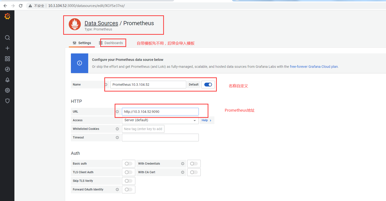 3)添加prometheus数据源