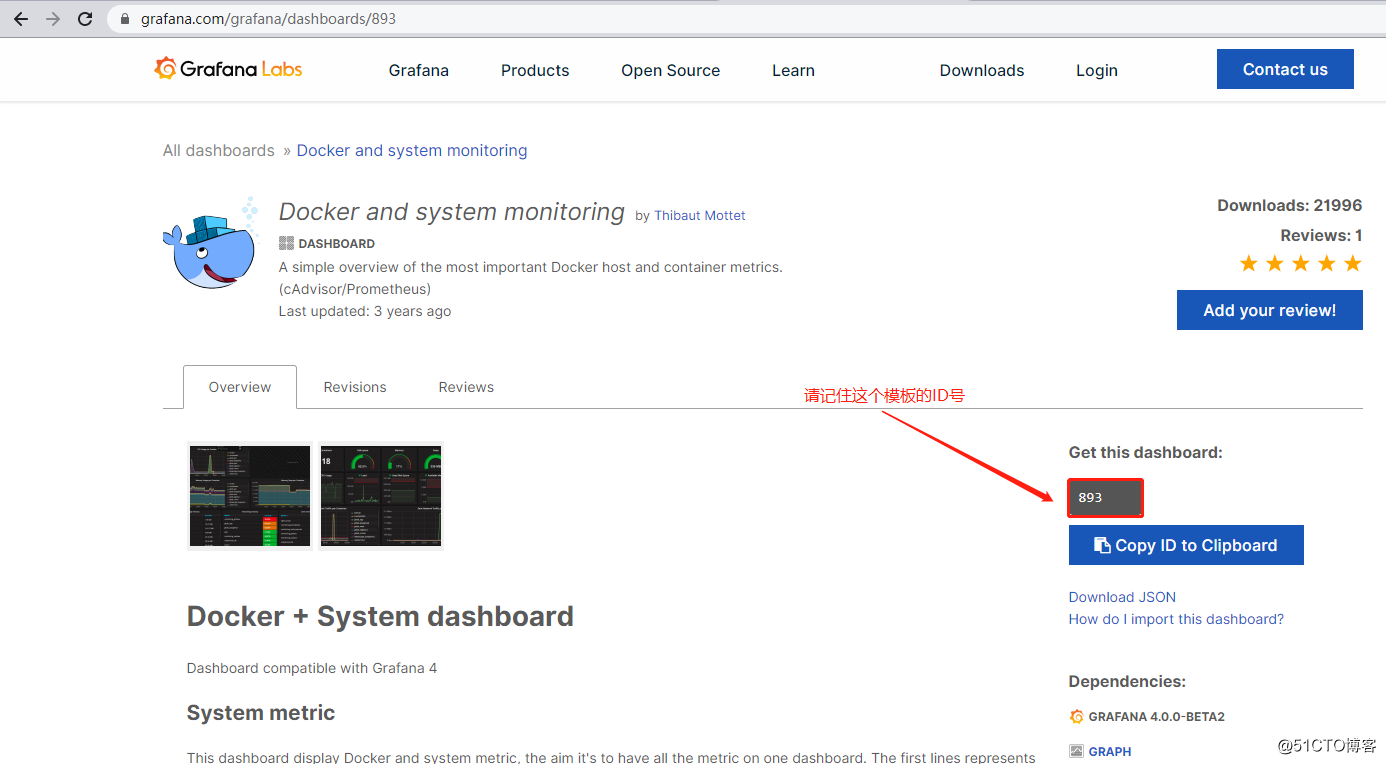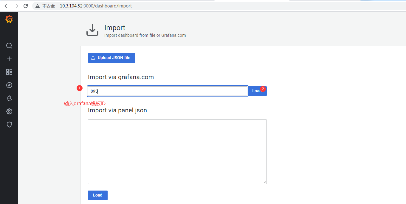 4)导入grafana模板,模板ID可以在grafana官网查找,如下