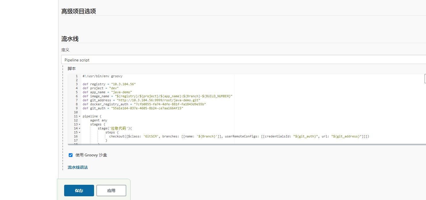 注:上述俩凭证ID用于Pipeline脚本中,docker_registry_auth 和git_auth变量的值