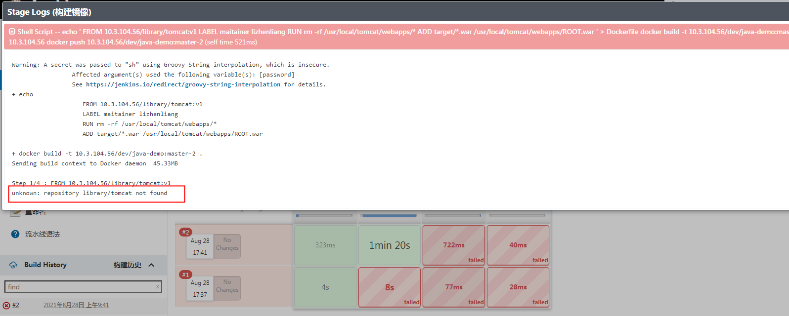 报错一:因为dockerfile写的是从harbor中拉取tomcat:v1镜像失败