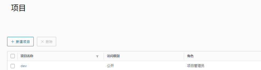 报错:二:推送镜像失败,是因为Harbor上没有这个名为(dev)项目,