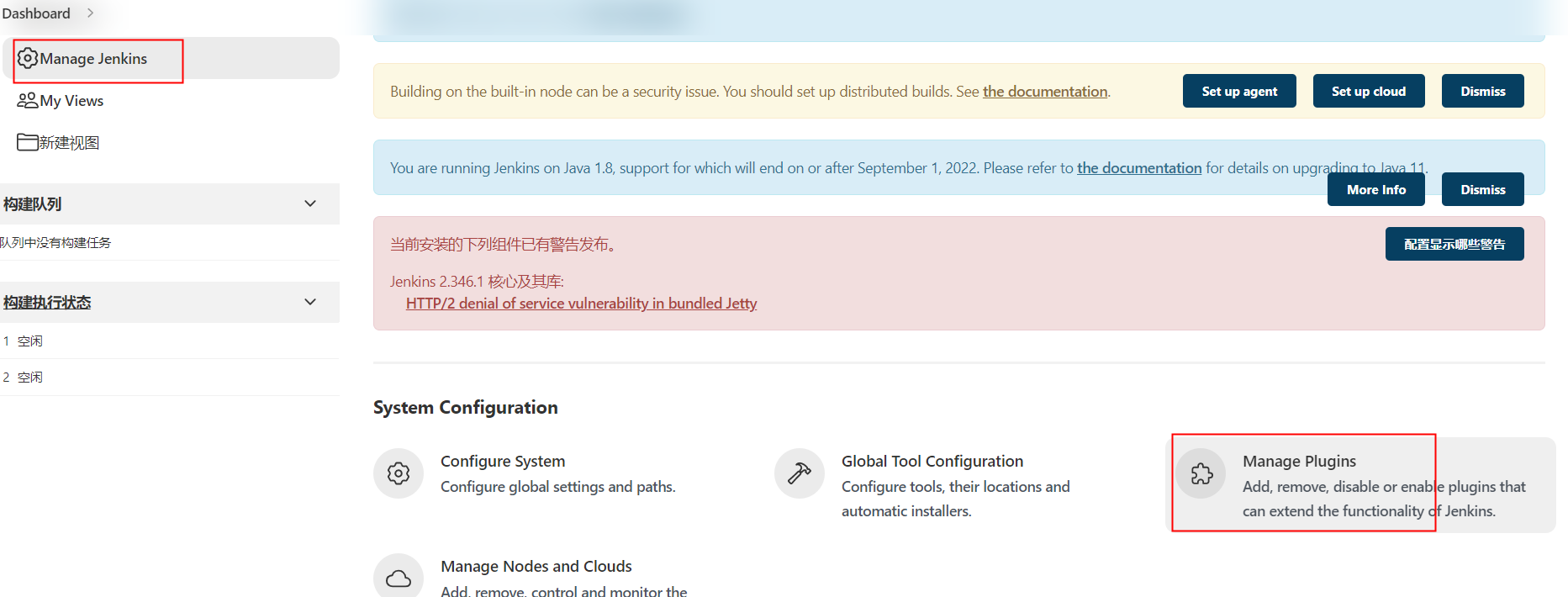 1)进入Manage Jenkins中,点击Manage Plugins,