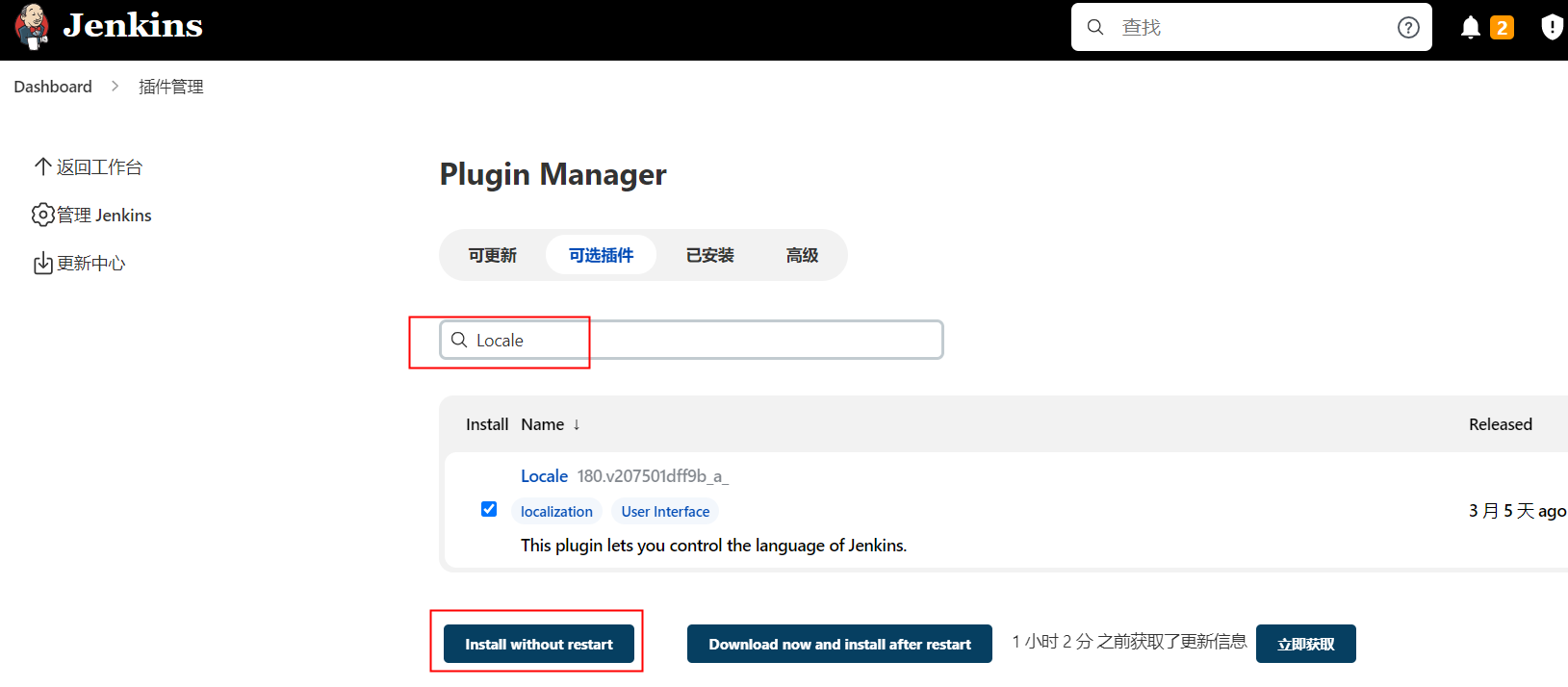 1.将语言设定为zh_US,Jenkins切换为英文。