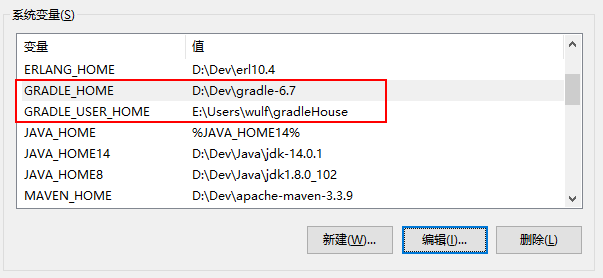 新建两个环境变量:一个是gradle安装目录,一个是jar包的仓库地址: