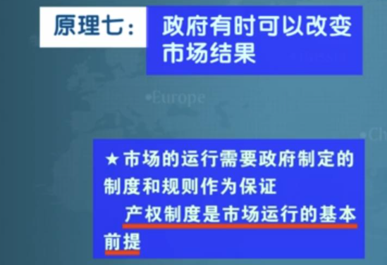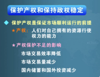 - 市场的顺利运行是需要政府制定产权制度来运行的。否则会出现战争等。