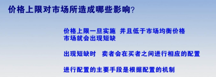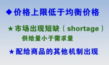 - 市场均衡失效的时候,配给商品机制出现。比如1排队,付出时间代价。2卖家的偏好买家。但是政府设置上下线并没有达到保护的初衷。