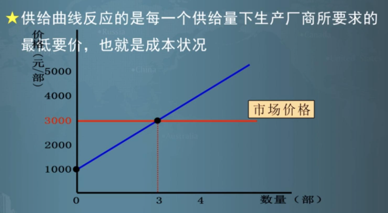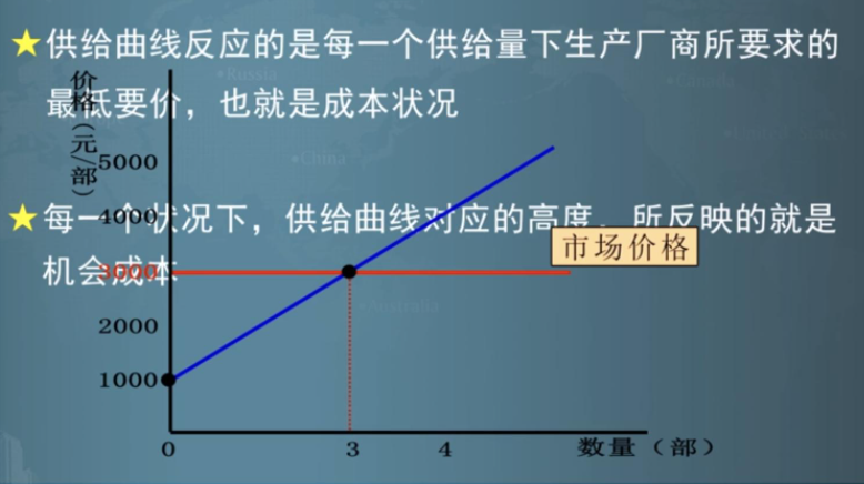 - 供给分析:个人的供给量和价格的对应关系形成每一个供给厂商和供给曲线可以得到市场供给曲线。