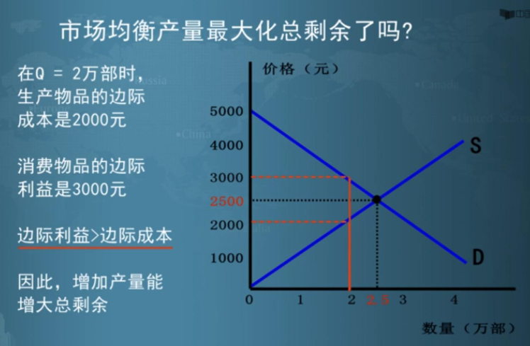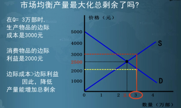 - 边际利益等于边际边际成本时,不多不少。(应该说的是市场均衡)