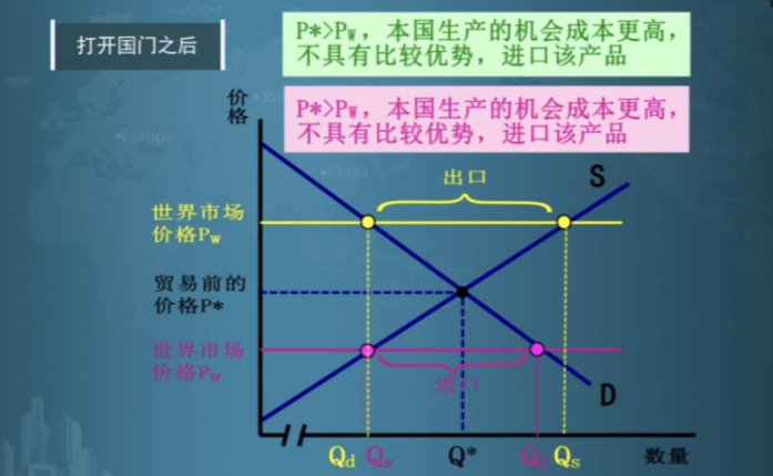 - 决定进口还是出口的取决于国内的成本与国际成本的比较。