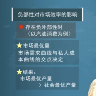 - 负外部性会导致市场数量过大。产量过大带来效率损失。