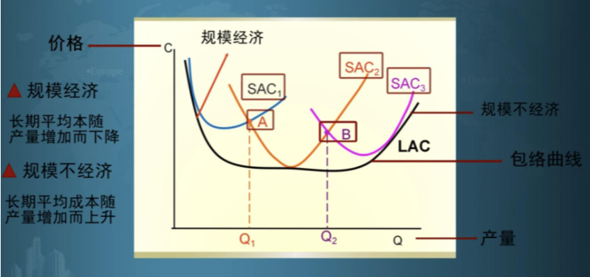 - 管理效率较低会带来规模不经济,成本提升。在此之前,是最经济状态。