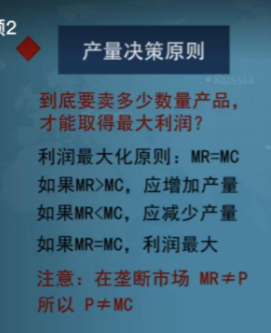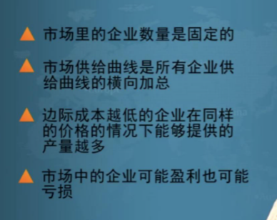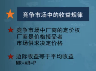 - 竞争型厂商 边际收益=平均收益=价格 效率最大化=边际收益=边际成本 且边际成本MC递增。