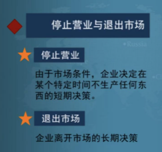 - 企业停产策略:销售收入是否弥补全部的可变成本,更不要说固定成本。(可变成本:工资、原料 固定成本:银行、利息、广告费)固定成本是已经投进去的,对于短期来说属于沉没成本,所以是不考虑的。//软件行业的可变成本只是实施成本,开发成本算在固定成本里面。