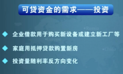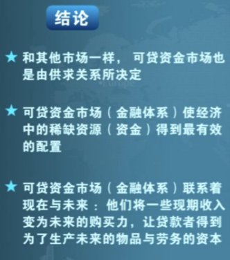 - 可贷资金市场是资金的供求方的匹配,与商品市场差别不大,他联系着现在与未来,把现期收入转换为未来的购买力。