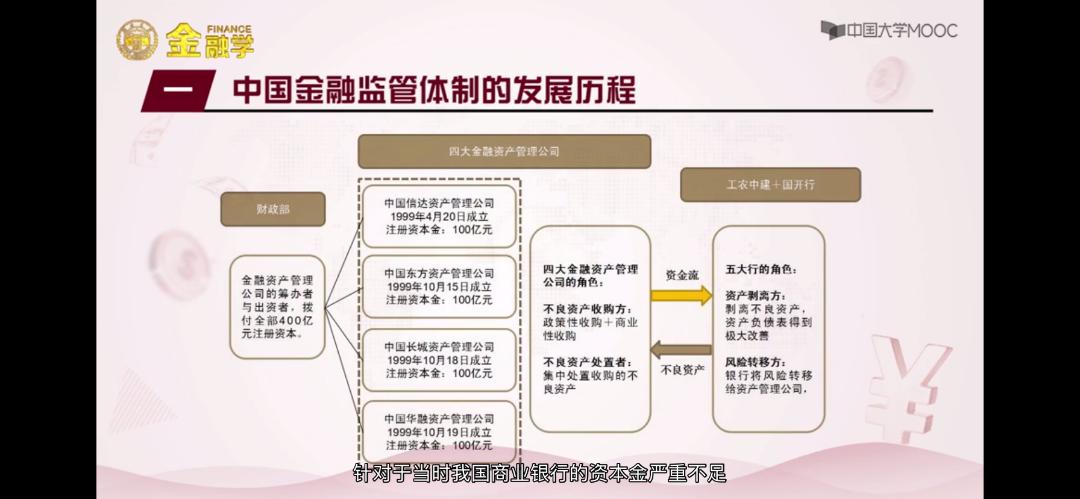 - 重要改革举措:以风险为基础的贷款质量五级分类管理体系;逐步加强资本充足率监管;健全专业监管机构;化解国有银行巨额不良资产;推动国有商业银行改制上市;成立四大资产管理公司并完成剥离万亿不良贷款。