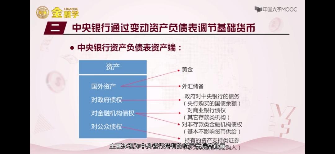 - 中央银行通过变动资产负债表调节基础货币: