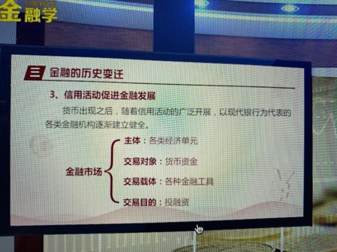 - 金融体系分为:金融工具、金融中介、金融市场、金融制度。