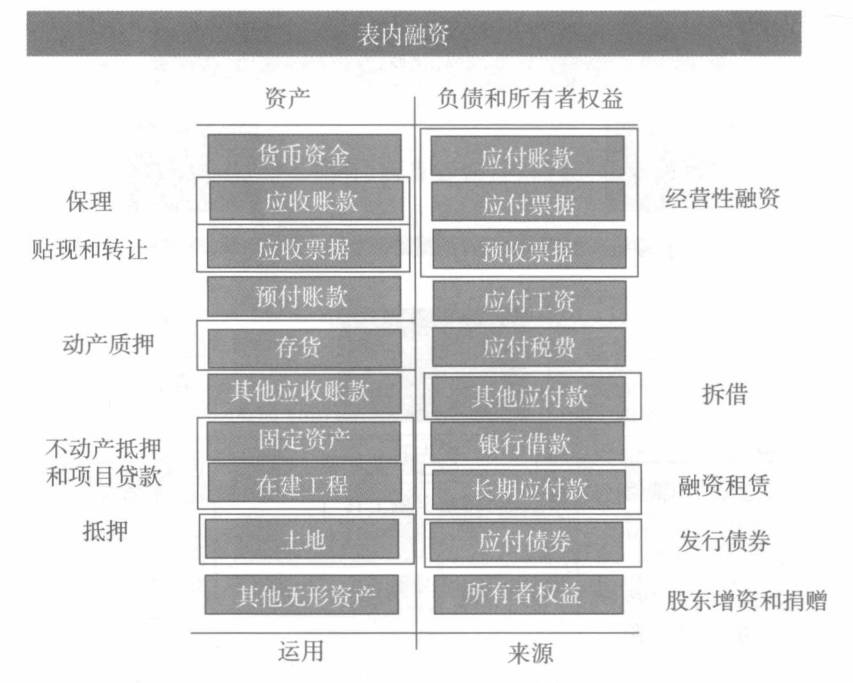 - 借钱分为(资产负债)表内和表外,简单来说,如果借的钱,在资产负债表上反映 出来,即增加了企业负债,为表内融资。如果借钱活动在资产负债表上没有表现出来,你会问,借的钱为何不在资产负债表上?举一个例子,比如,出售有追索权的应收账款,本质上它是一种以应收账款为抵押的借款,但在现行会计实务中,企业对售出的应收账款作为资产转让,而不确认负债。这几年流行的ABS,资产证券化也是 企业的一种有效的表外融资方式。