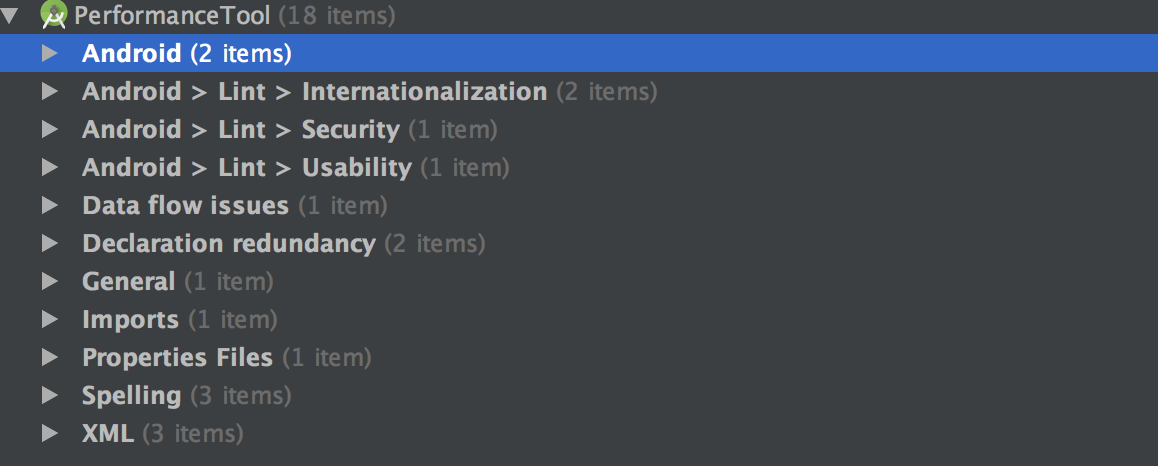 Lint主要是提供一套静态代码分析的工具,它可以帮助我们检查项目中存在的问题,让我们更有规范性的开发App。运行菜单的analyze->Inspect Code。