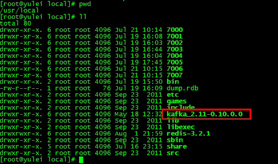 可以看到/usr/local目录下有我们解压后的Kafka目录文件