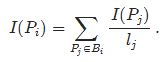 由于跳转网页是随机的,我们用Tj表示停留在网页Pj上的时间。那么我们从网页Pj转到网页Pi的时间为Tj/lj。如果我们转到了网页Pi,那么我们必然是从一个指向它的网页而来。这意味着