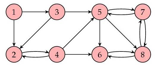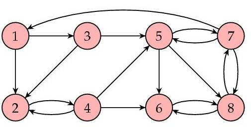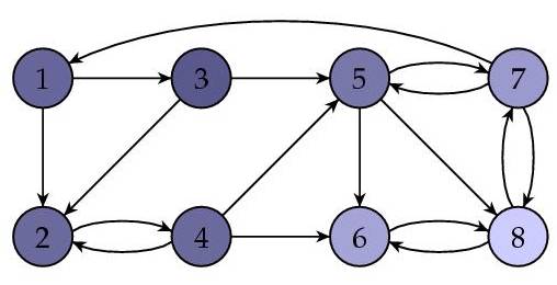 让我们来看一个例子。下图所示为一个网页集合(8个),箭头表示链接。