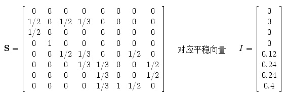 简言之,矩阵S是随机矩阵,即意味着它有一个平稳向量。然而,我们同时还需要S满足(a)本原,从而|λ2|<1;(b)不可约,从而平稳向量的所有元均为正。