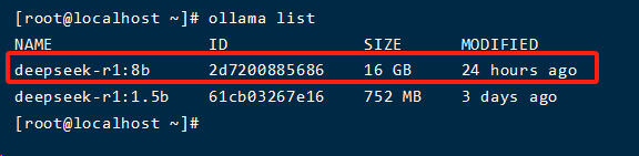 运行成功后,输入ollama list,看到下列信息则说明创建成功