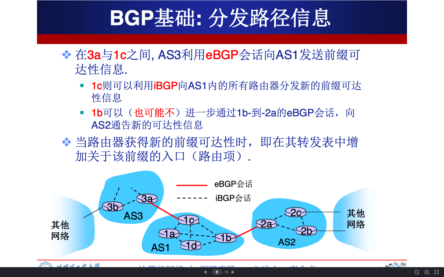 网关路由器收到路由通告后,AS间基于决策路由(商业政治因素等)。