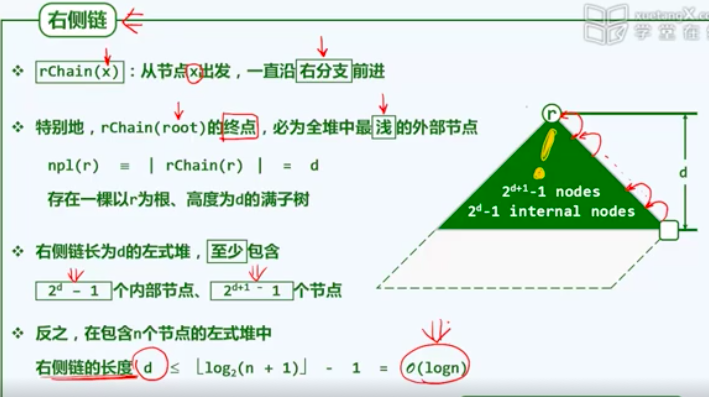 左倾性:对任何内部节点,都有npl ( lc( x ) ) >= npl ( rc( x ) ),npl ( x ) = 1 + npl( rc(x)) ,npl(x)= 1 + min(npl(l c(x)), npl ( rc (x) )。