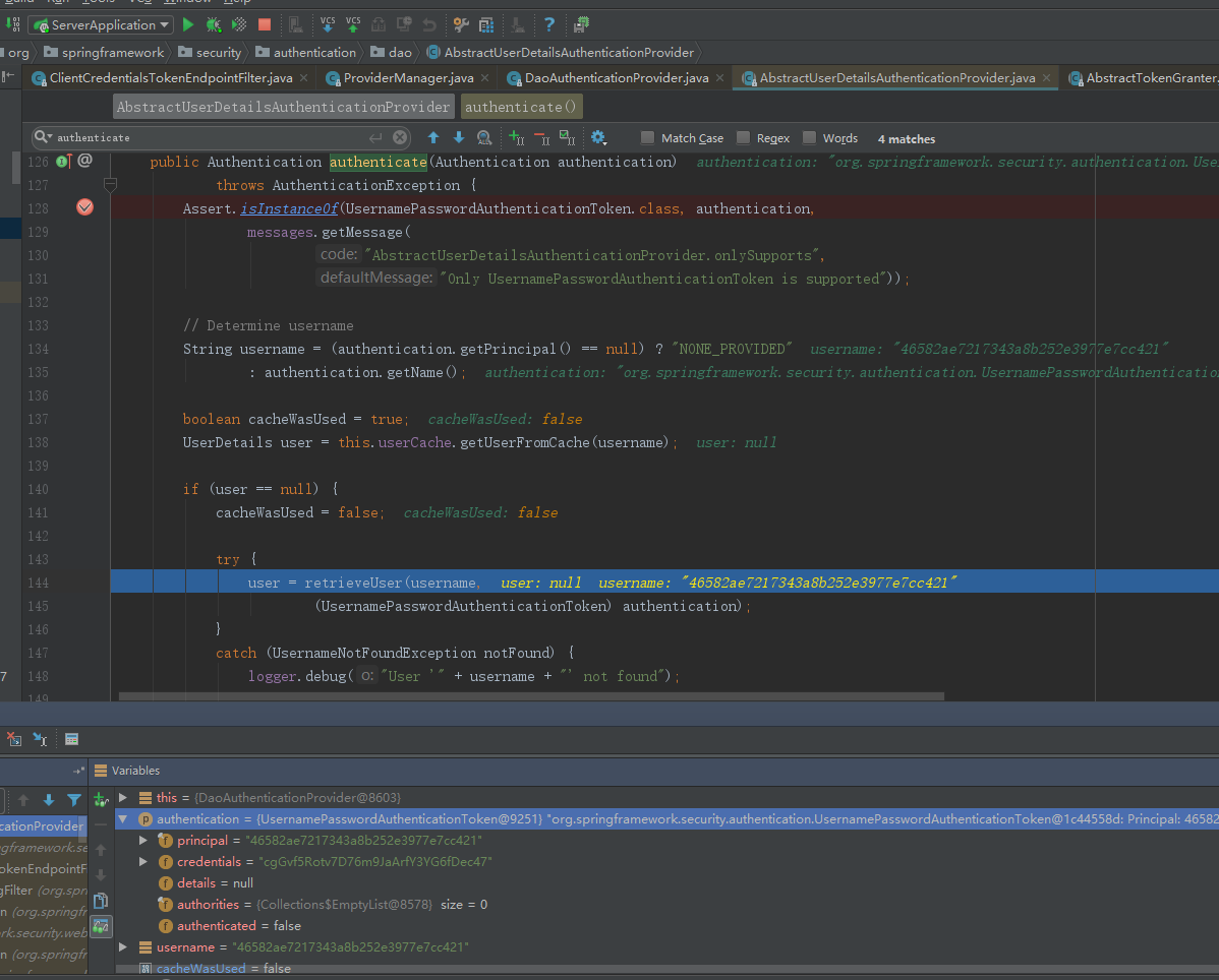 之后,再次进如DaoAuthenticationProvider 认证clientId和clientSecret