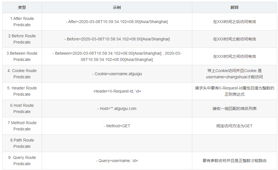 参考的是java8的java.util.function.predicate 开发人员可以匹配http请求中的所有内容(例如请求头或请求参数),如果请求与断言相匹配则进行路由