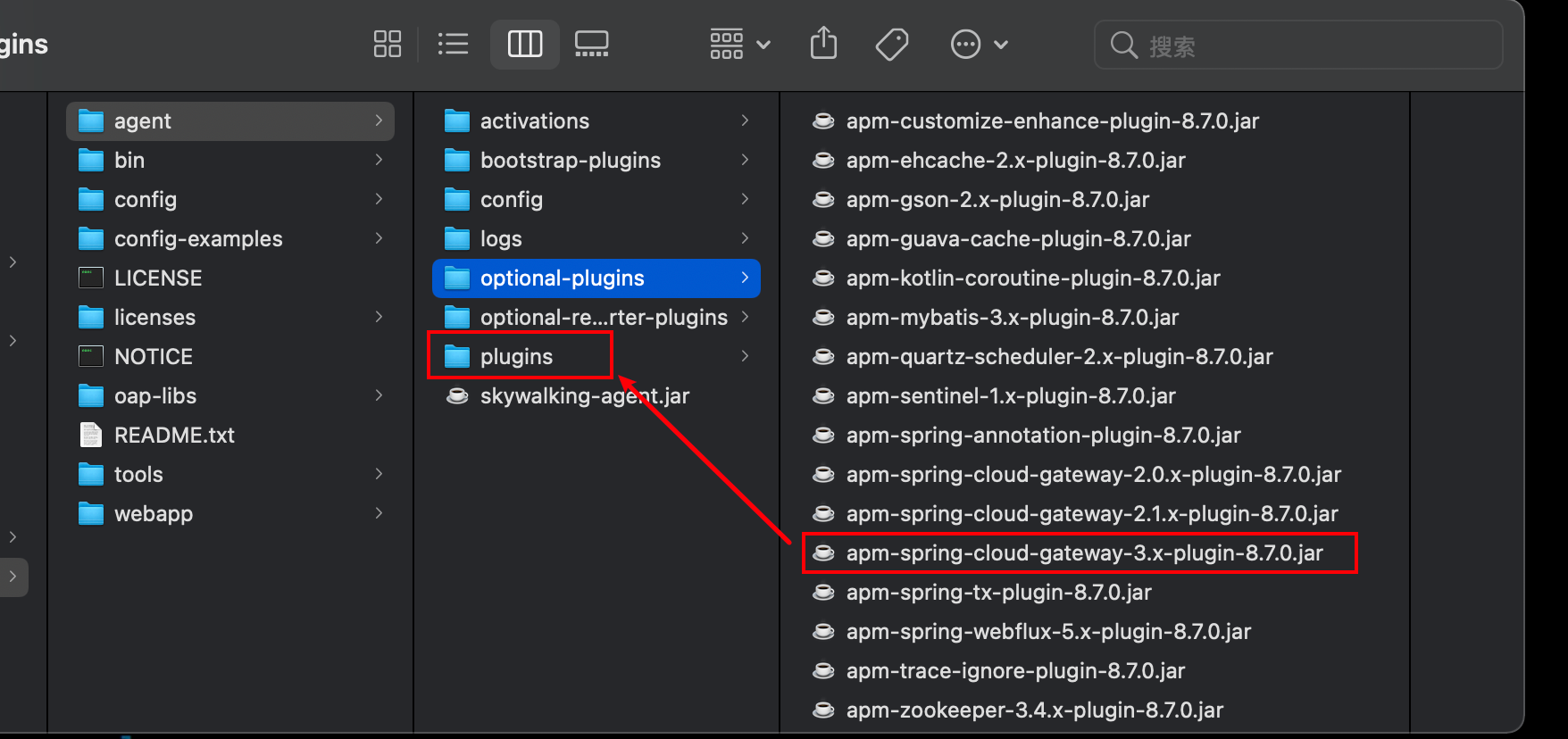 默认的是没有监控gateway插件,我们可以将agent->optional-plugins的插件直接移到plugin里面就可以