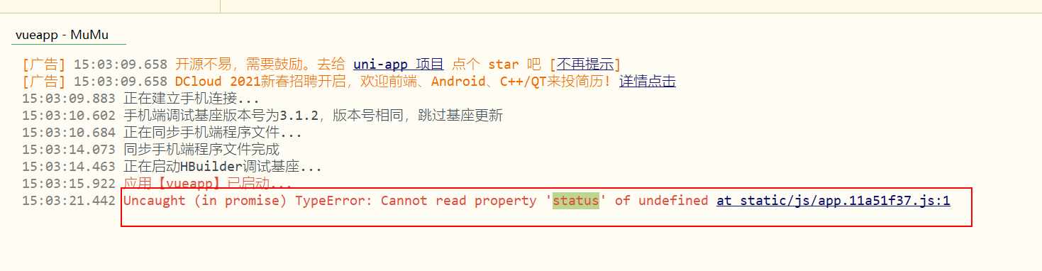 1、登录的时候,报错说:uncaught (in promise) typeerror: cannot read property 'status' of undefined at static/js/app.2bdca4b