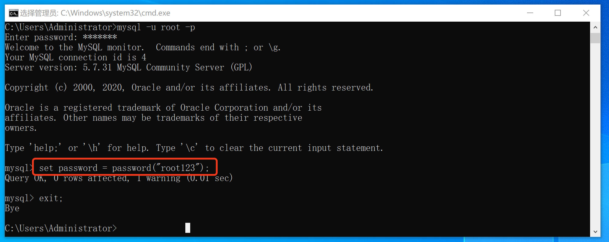 use mysql; update user set authentication_string = password('新密码'),password_last_changed=now() where user='root';