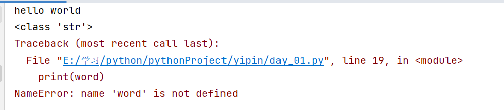 (1)名字错误(NameError):代码定义名字时格式不规范,出现的错误;如 print(word)没加 ‘’, “” 单双引号,出现报错;
