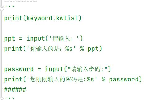 (2)多行注释:在python中可以用一对连续的三个引号(单、双引号都可以)进行注释;